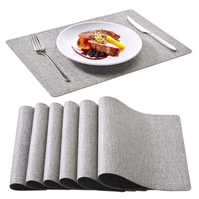 Aoibox Faux Leather Placemats Set of 6, Light Grey Table Mats, Waterproof & Non-Slip for Indoor & Outdoor Dining