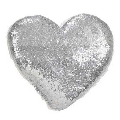 Poly Filled Heart Sequin Throw Pillow Silver - Saro Lifestyle