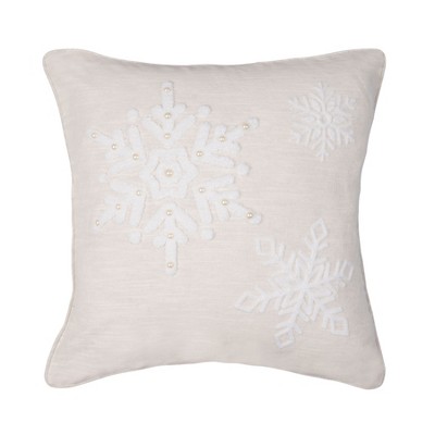 C&F Home White Snowflakes w/ Pearl Beads Cotton Blend Christmas Accent Throw Pillow 18" x 18"