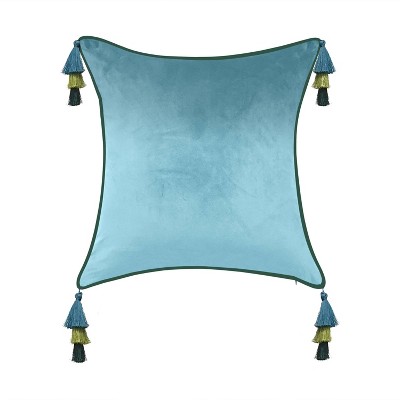 18"x18" Velvet Reversible Tassel Square Throw Pillow - Edie@Home