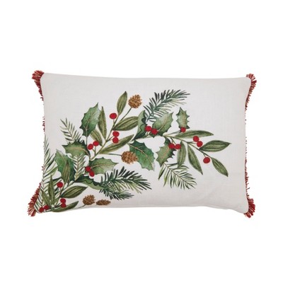 Square Cross-Stitched Floral Pillow with Printed Green/Pink - Threshold™ designed with Studio McGee