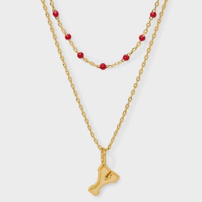 14K Gold Dipped Beaded Initial Necklace Set 2pc - A New Day™ Gold/Marron