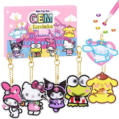 Etokfoks 6pcs Diamond Art Keychain Kit for Girls Ages 8-12 DIY Crafts for Kids Includes 1000 Gems Stylus Wax Tray Zipper Bags