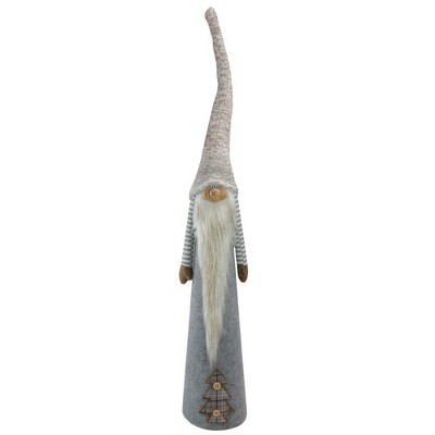 Northlight Tall Cone Gnome with Buttoned Plaid Christmas Tree Figure - 22" - Gray and Brown