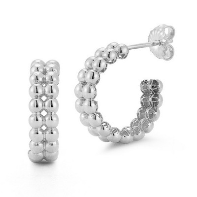 Sphera Milano Sterling Silver Double Beaded Row Hoop Earrings