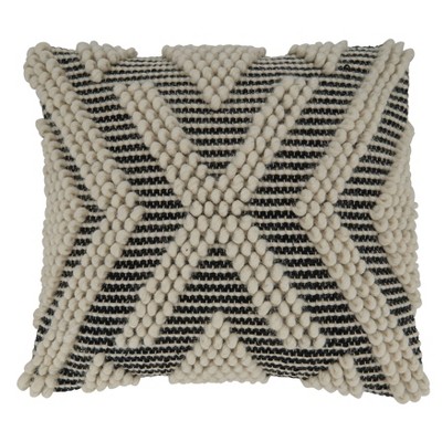 18"x18" Woven Poly Filled Arrow Design Square Throw Pillow Black/White - Saro Lifestyle: Cotton & Wool, Indoor Use, Zipper Closure