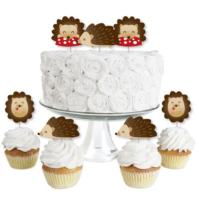 Big Dot of Happiness Forest Hedgehogs - Dessert Cupcake Toppers - Woodland Birthday Party or Baby Shower Clear Treat Picks - Set of 24