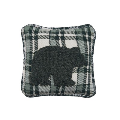 C&F Home Bear Green & White Plaid Hooked Accent Pillow 8" x 8"