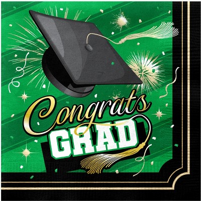 Treasures Gifted Green Graduation Napkins - Green Graduation Party Supplies - 48 Pack