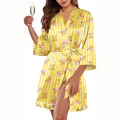 ADR Women's Short Bathrobe, Womans Robe Plush Faux Fur Accents Fuzzy Feather Bath Robe