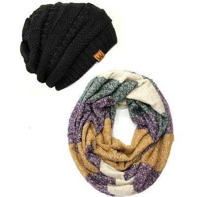 Wrapables Plaid Print Infinity Scarf and Beanie Hat Set, Red and Green Set