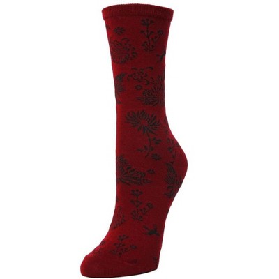 Natori Cascading Floral Cotton Blend Crew Sock Rhubarb 9-11