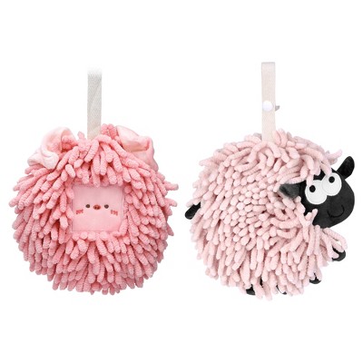 REGALWOVEN Cute Decorative Funny Sheep Shape Fast Drying Hanging Hand Towels 7" x 7" 2 Pcs