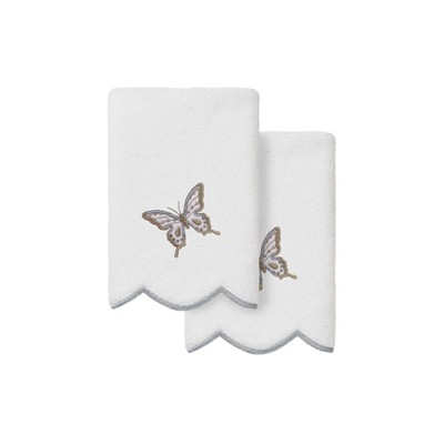 Linum Home Textles Monogrammed Luxury 100% Turkish Cotton Novelty White Hand Towels (Set of 2)