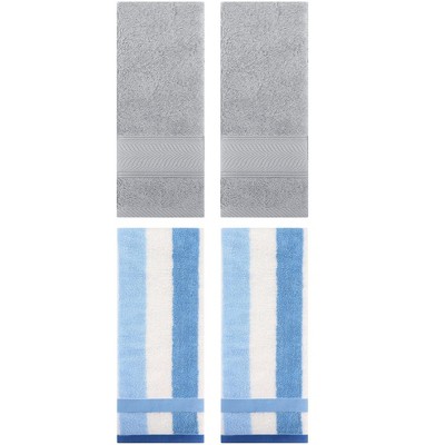 REGALWOVEN 4 Pcs Bathroom Cotton Soft and Absorbent Geometric Hand Towel 13" x 29"