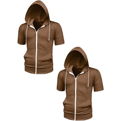 Lars Amadeus Men's Solid Color Zip Up Short Sleeves Sweatshirt with Drawstring Hood 2 Packs