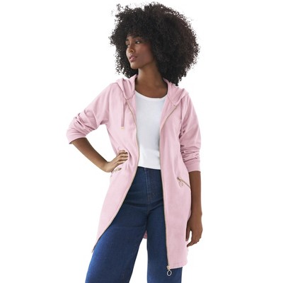 ellos Stretch Velour Zip Front Long Sleeve Jacket With Hood