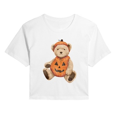 Women's - Instant Message - Pumpkin Teddy Bear Cropped Graphic T-Shirt
