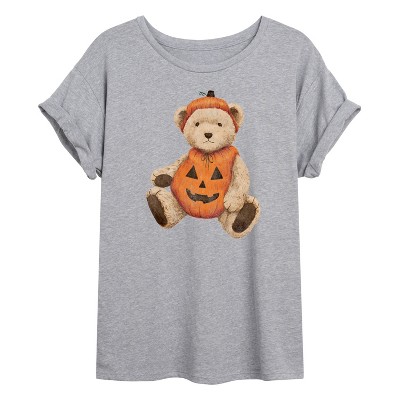 Women's - Instant Message - Pumpkin Teddy Bear Oversized Graphic T-Shirt