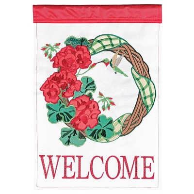 Dicksons Magnolia Garden Welcome Geranium Wreath Hummingbird Red 18 x 13 Polyester Outdoor Garden Flag