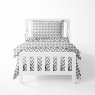 Bacati - Houndstooth/Herringbone Gray Unisex Muslin 4 pc Toddler Bedding Set