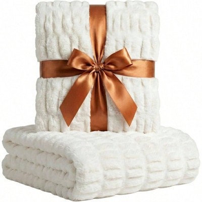 50x70in Fluffy Throw Blanket White Snow Soft Warm for Couch Bedroom Machine Washable Luxury Home Decor