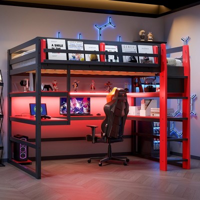 Full Size Loft Bed with Desk and Drawers