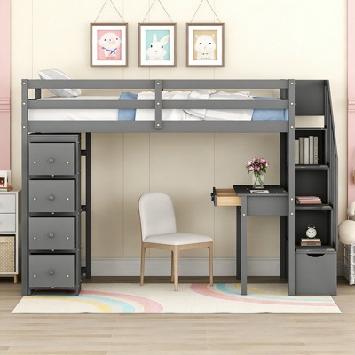 bed with desk under