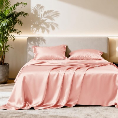 Queen Satin Sheet Set 4PC - White Luxury Silk Feel Deep Pocket Bedding
