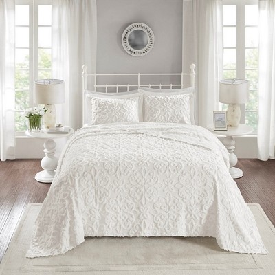 3 Piece Tufted Cotton Chenille Bedspread Set Off-White King/Cal King