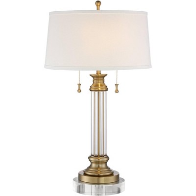 Vienna Full Spectrum Rolland Traditional Table Lamp 30" Tall Crystal Brass Column Off White Tapered Drum Shade for Bedroom Living Room Bedside Office