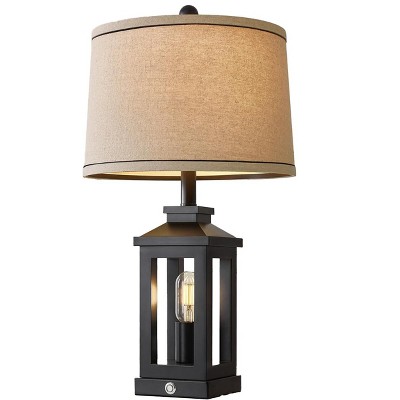 Maxax 24" Rustic Table Lamp, Farmhouse Bedside Lamp with USB Charging Port for Nightstand or Bedroom