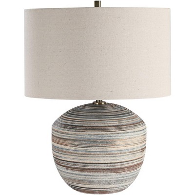 John Timberland Otero Rustic Table Lamp Southwest 27" Tall Faux Mottled Stone Cream Linen Drum Shade for Bedroom Living Room Bedside Nightstand Kids