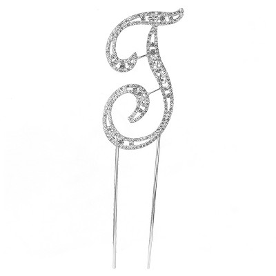 O'Creme Silver Rhinestone 'Letter T' Cake Topper
