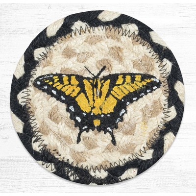 Earth Rugs Blue Swallowtail Butterfly Jute Coaster – 5"x5" Round Eco-Friendly Braided Natural Mat
