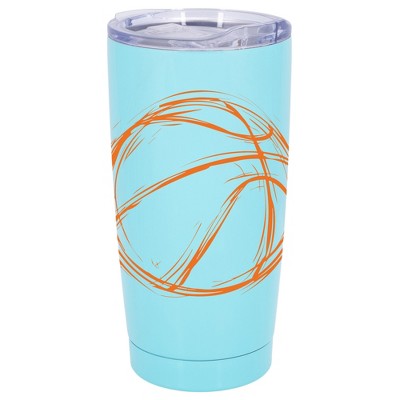 100 North 20 Ounce Stainless Steel On the Go Travel Tumbler With Push Top Lid, Basketball Teal