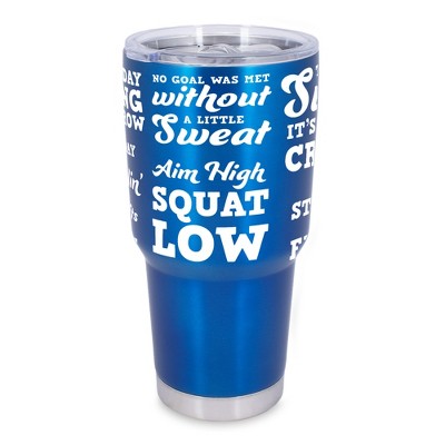 100 North 20 Ounce Stainless Steel On the Go Travel Tumbler With Push Top Lid, Hearts and Weights Blue