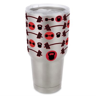 100 North 30 Ounce Stainless Steel On the Go Travel Tumbler With Push Top Lid, Workout Weights Silver
