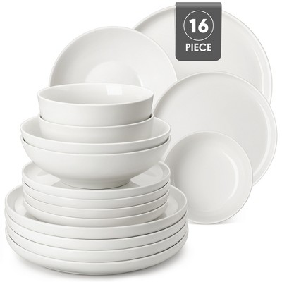 16-Piece White Curved Edge Ceramic Set for 4 - Modern Bowls, Plates, Soup & Cereal Bowls