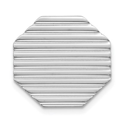 Black Bow Jewelry Rhodium Plated Sterling Silver Striped Octagon Lapel or Tie Pin, 13mm