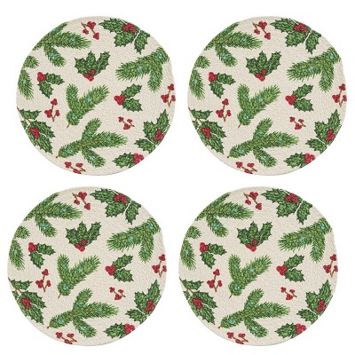 Saro Lifestyle Beaded Holly Placemat, 15" Round, White/Green (Set of 4)
