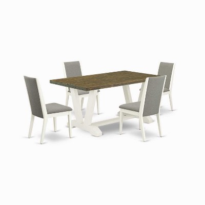 HomeStock 5-Piece Rectangle Wire Brushed Linen White Finish Solid Wood Top Dining table with 4 Chairs