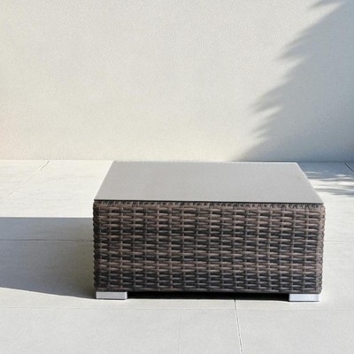SUGOLD Super Patio Outdoor Side Table, 20" Square Wicker End Table, Tempered Glass Top Coffee Table Brown