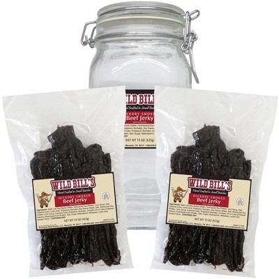 Wild Bill's Original Hickory Smoked Beef Jerky Two-Bag Starter Kit (two 15oz bags and 1 jar)