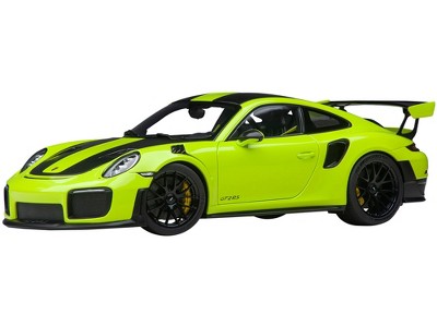 Porsche 911 (991.2) GT2 RS Weissach Package Acid Green with Carbon Stripes 1/18 Model Car by Autoart