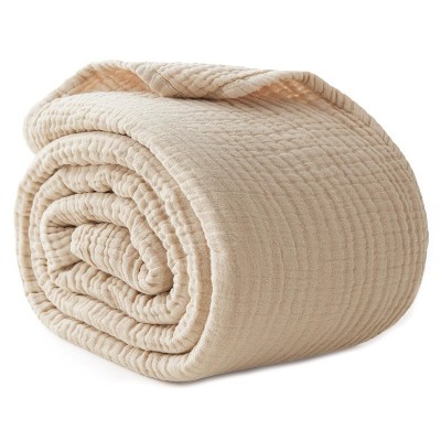 Itopfox 100% Cotton Muslin Blanket, 6-Layer Cooling Soft Throw for Bed & Couch, Breathable Quilt Bedspread, Gauze Bedding for Adults, Oatmeal Beige