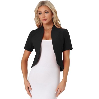 INSPIRE CHIC Women's Long Sleeve Lapel Collar Velvet Open Front Cropped Cardigan