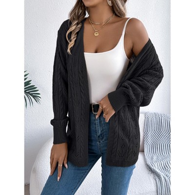 Women's Ugly Christmas Sweater Open Front Caidigans Knitted Long Sleeve Sweaters Cardigan Black L