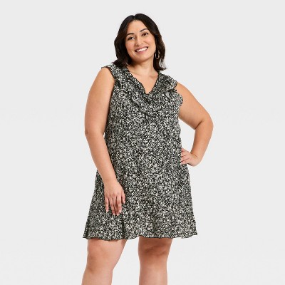 Women's Ruffle Mini A-Line Dress - Universal Thread™ Black Floral