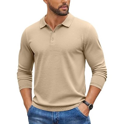 COOFANDY Mens Long Sleeve Polo Knit Polo Sweater Collared Pullover Casual Golf Polo Sweater